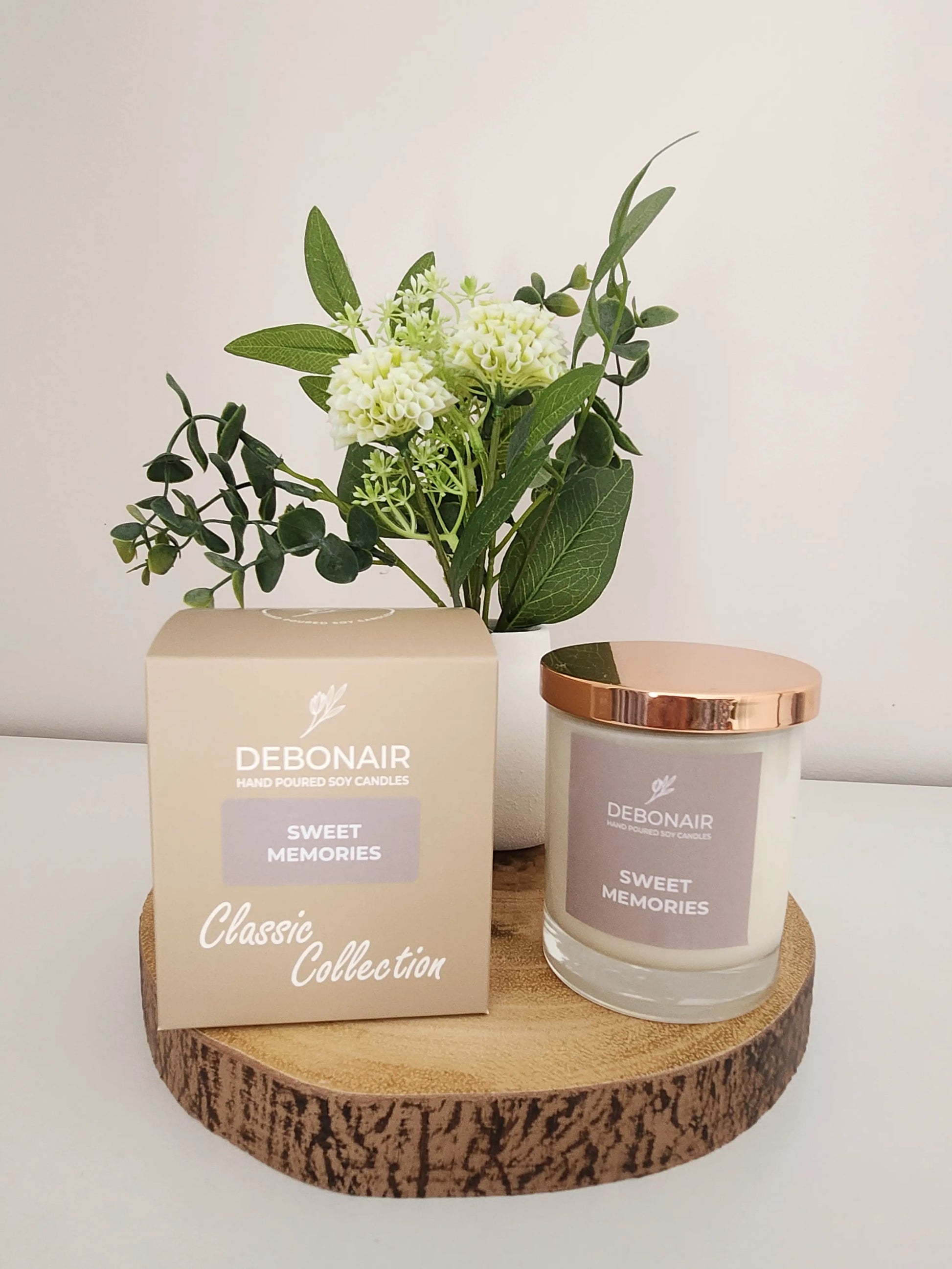 The Sweet Memories 160g Candle from our Classic Collection is designed to evoke moments of warmth and familiarity. Hand-poured using soy wax, this candle offers a clean burn and a soft, delicate fragrance that brings a sense of calm to your space.