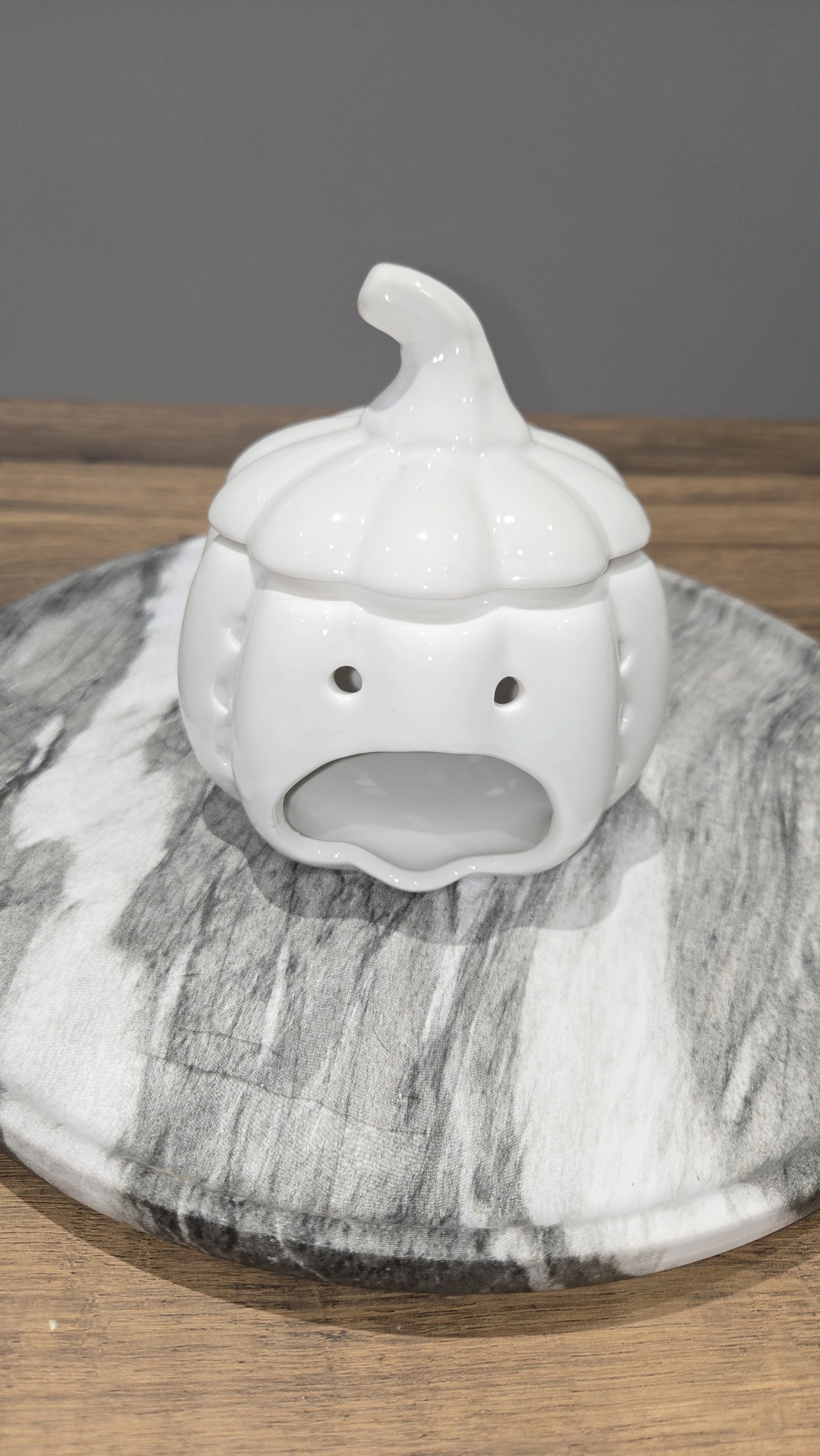 White Ceramic Pumpkin Fragrance Burner for Oils & Wax Melts - Autumn Home Fragrance